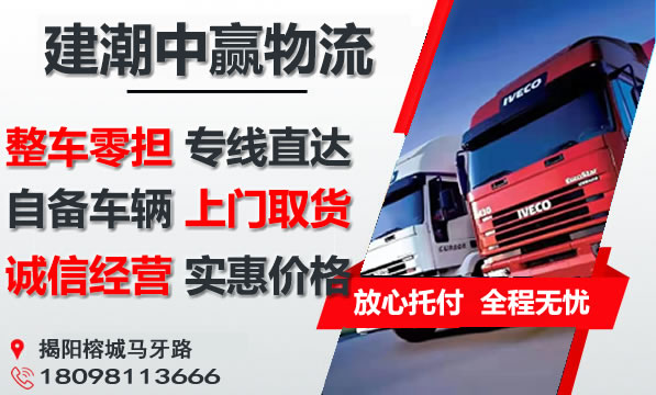 3、揭阳到武汉物流专线价格优惠、运货及时,欢迎来人来电咨询揭阳到武汉的物流价格、运费和报价等相关问题,建潮中赢物流将全力为您提供合理的运输方案。